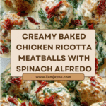 These Baked Chicken Ricotta Meatballs with Spinach Alfredo Sauce combine tender, flavorful meatballs with a creamy, garlicky sauce rich in spinach and Parmesan. Perfect for a comforting dinner, this dish is both satisfying and elegant, sure to impress family and friends.