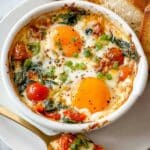 Baked Feta Eggs are a flavorful and satisfying Mediterranean-inspired breakfast or brunch dish. Creamy feta cheese bakes with fresh vegetables, topped with perfectly cooked eggs for a comforting meal that’s easy to prepare. Serve with crusty bread for dipping and enjoy a warm, savory start to your day.