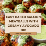 Keywords: baked salmon meatballs, avocado sauce, healthy salmon recipe, easy dinner, seafood meatballs, creamy avocado dip, baked fish balls