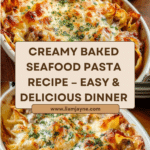 Baked Seafood Pasta is a creamy, flavorful dish that combines tender pasta with a medley of shrimp, scallops, and crab meat baked under a golden, bubbly cheese crust. Enhanced with garlic, spinach, and aromatic herbs, this comforting recipe is perfect for family dinners or special occasions, offering an elegant yet approachable seafood pasta experience.