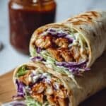 Keywords: BBQ chicken wraps, coleslaw wraps, easy lunch, BBQ chicken recipe, healthy wraps, shredded chicken, creamy coleslaw, quick meal