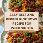 A quick and easy Beef and Pepper Rice Bowl recipe featuring tender ground beef cooked with colorful bell peppers and jalapeño, seasoned with soy sauce and spices, and served over fluffy rice. This one-pan meal is perfect for busy weeknights, offering a flavorful, nutritious, and budget-friendly dinner option.