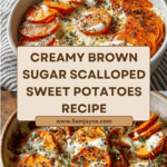 Keywords: scalloped sweet potatoes, brown sugar sweet potatoes, holiday side dish, creamy sweet potatoes, baked sweet potatoes, sweet potato casserole with marshmallows