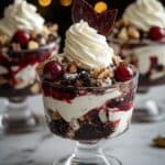 A decadent and visually stunning Black Forest Trifle that layers chocolate cake, vanilla pudding, cherries, and whipped cream. Perfect for festive occasions, this no-bake assembly dessert combines rich chocolate flavors with luscious cherries and creamy textures for an indulgent treat.