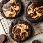 Deliciously rich and chewy Butter Cup Cookies feature a perfect blend of cocoa, peanut butter, and chocolate chips, each topped with a miniature peanut butter cup. These cookies combine a soft center with melty chocolate for an indulgent treat perfect for any occasion.