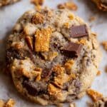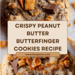 These Butterfinger Cookies combine rich peanut butter cookie dough with crunchy, sweet Butterfinger candy pieces for a delightful treat. With a soft, chewy texture punctuated by the crispiness of the Butterfinger chunks, these cookies are perfect for peanut butter lovers looking for a fun twist on classic cookies.