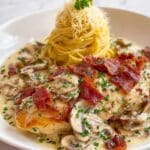 Keywords: Chicken Riesling, Cheesecake Factory recipe, creamy chicken dish, pancetta chicken, mushroom chicken, comfort food, American dinner recipe, chicken with wine sauce