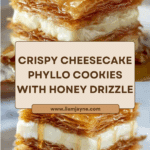 These Cheesecake Phyllo Cookies offer a delightful balance of creamy cheesecake filling wrapped in crispy, buttery phyllo dough. Topped with warm honey and nuts, they make a perfect treat for special occasions or an elegant dessert to share.