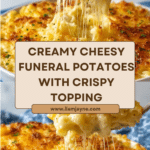 Keywords: Cheesy Funeral Potatoes, funeral potatoes, hashbrown casserole, cheesy casserole, holiday sides, comfort food, side dish, easy casserole
