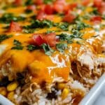 PrintCheesy Salsa Chicken and Rice Bake Recipe