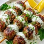 This Chicken Kofta with Garlic Yogurt Sauce recipe features flavorful grilled chicken meatballs seasoned with aromatic spices and fresh herbs, served alongside a tangy and creamy garlic yogurt sauce. Perfect for a delicious dinner, these juicy koftas are easy to prepare and bring a delightful Mediterranean touch to your meal.