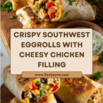 Crispy Southwest Eggrolls bursting with bold flavors from chicken, black beans, corn, peppers, and cheeses. These homemade copycat Chili’s Southwest Eggrolls come with a creamy Southwest Ranch dipping sauce, perfect for an appetizer or snack with a satisfying crunch and cheesy melt.
