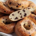 Keywords: chocolate chip bagels, homemade bagels, chocolate bagels, chewy bagels, breakfast bread