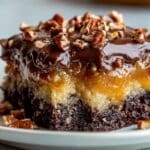 Chocolate Poke Cake is a rich and indulgent dessert that combines moist chocolate cake with luscious caramel, toasted coconut, and crunchy pecans. Its fudgy ganache topping makes it perfect for any occasion where you want to impress with minimal effort.