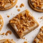 These Cinnamon Toast Crunch Cookies combine the nostalgic cinnamon-sugar flavor of the beloved cereal with a soft, chewy cookie base. Featuring crushed Cinnamon Toast Crunch cereal folded into the dough for a delightful crunch, complemented by a warm cinnamon-spiced batter and a sprinkle of cinnamon streusel topping, these cookies deliver a perfect balance of sweetness, texture, and cinnamon warmth. Finished with a drizzle of vanilla icing, they are an irresistible treat perfect for any occasion or sweet craving.
