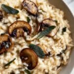 Keywords: mushroom risotto, sage butter, arborio rice, Italian recipe, creamy risotto, parmesan cheese, sautéed mushrooms