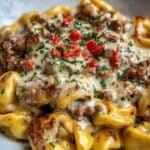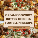Cowboy Butter Garlic Chicken Tortellini with Fire-Roasted Red Peppers is a rich and creamy pasta dish featuring tender chicken bites, cheese-filled tortellini, and a luscious cowboy butter sauce composed of garlic, herbs, Dijon mustard, lemon juice, and a hint of spice. The addition of smoky fire-roasted red peppers adds a delightful sweet and smoky contrast, making this meal indulgent yet balanced. Perfect for busy weeknights or special dinners, this recipe delivers bold Western-inspired flavors with comforting creaminess.