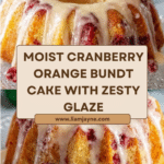 This Cranberry Orange Bundt Cake is a delightful holiday dessert featuring fresh cranberries and zesty orange flavors baked into a moist, tender cake. Topped with a light orange glaze, this festive bundt cake combines the tartness of cranberries with the sweetness of a buttery cake, perfect for any celebration or cozy gathering.