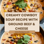Creamy Cowboy Soup is a hearty and comforting dish featuring ground beef, potatoes, black beans, corn, and a medley of spices, enriched with heavy cream and cheddar cheese for a rich finish. Perfect for chilly evenings, this soup balances smoky, savory, and creamy flavors to satisfy any craving.