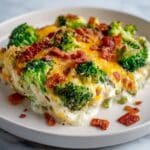 This creamy low carb chicken casserole combines tender chicken, crisp broccoli, and savory turkey bacon in a cheesy ranch sauce. It’s an easy, comforting meal perfect for weeknights or meal prep that brings flavor and warmth to your table.
