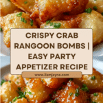 Crispy Crab Rangoon Bombs are easy to make, perfectly crispy, and filled with a creamy, savory delight. These bite-sized appetizers are sure to impress every party guest with their satisfying texture and flavorful filling.