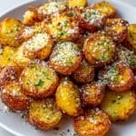 Crispy Parmesan Crusted Baby Potatoes are a flavorful and easy-to-make side dish, perfectly roasted to golden brown perfection. Halved baby potatoes are coated in olive oil and a savory mixture of grated Parmesan, garlic powder, onion powder, oregano, salt, and pepper, then oven-roasted for a crispy crust and tender inside. Garnished with fresh parsley, these potatoes complement grilled meats or vegetarian meals beautifully.