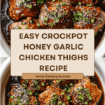 Keywords: crockpot chicken, honey garlic chicken, slow cooker chicken thighs, easy chicken recipe, one pot meal