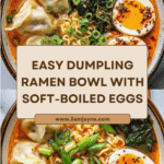 Keywords: dumpling ramen bowl, instant ramen, soft boiled eggs, chicken broth soup, Asian comfort food, quick ramen recipe