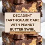 Keywords: Earthquake Cake, chocolate fudge cake, peanut butter cream cheese frosting, Reese’s peanut butter cups, chocolate cake dessert, rich chocolate cake, easy dessert recipe