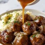 Store leftover meatballs and gravy in an airtight container in the refrigerator for up to 3 days. Reheat gently on the stove over low heat, adding a splash of broth or water if the gravy is too thick. This dish can also be frozen for up to 2 months; thaw in the refrigerator overnight before reheating.