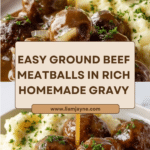 This Easy Ground Beef Meatballs and Gravy recipe features tender, flavorful meatballs browned to perfection and simmered in a rich, savory homemade gravy with caramelized onions and a blend of spices. Perfect for a comforting family meal that combines hearty textures with a delicious, thick gravy.