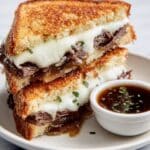 PrintFrench Dip Grilled Cheese with Caramelized Onions and Rich Au Jus Recipe