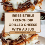 The French Dip Grilled Cheese is a comforting twist on two classic favorites—grilled cheese and French dip sandwiches. Featuring caramelized onions, Swiss cheese, and tender roast beef, it’s served with a flavorful au jus for dipping. Perfect for a cozy meal that’s easy to prepare at home.