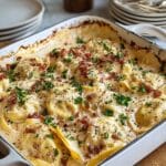 This Olive Garden-inspired Garden Ravioli Carbonara features tender cheese-filled ravioli enveloped in a rich and creamy carbonara sauce made with pancetta, Parmesan cheese, and a perfect blend of heavy cream and egg yolks. Finished with fresh parsley and cracked black pepper, it’s a comforting and indulgent pasta dish perfect for any occasion.