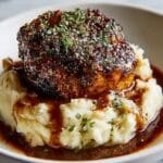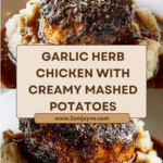 This Garlic Herb Chicken recipe features juicy boneless, skinless chicken breasts seasoned with fresh garlic, parsley, and thyme, seared to a golden crust and finished with a luscious buttery pan sauce made with balsamic vinegar and brown sugar. Served atop creamy mashed russet potatoes enriched with butter and heavy cream, this comforting, savory dish is perfect for a hearty family dinner or special occasion meal.