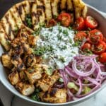 Keywords: Greek chicken gyro, chicken gyro recipe, Mediterranean chicken bowl, tzatziki chicken, Greek chicken with rice, easy chicken gyro