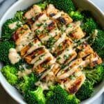 Grilled Chicken & Broccoli Bowls with Creamy Garlic Sauce combine juicy grilled chicken, tender steamed broccoli, and hearty brown rice in a deliciously balanced meal. Finished with a light and flavorful garlic sauce, this dish is perfect for quick weeknight dinners or meal prep.