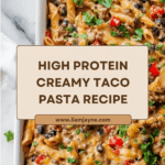 This High Protein Creamy Taco Pasta is a delicious and satisfying meal perfect for busy weeknights. Combining lean ground beef with creamy cheese sauce and flavorful taco spices, it’s a crowd-pleaser that’s easy to make and packed with protein.