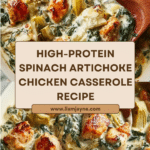 This high-protein spinach and artichoke chicken casserole is a creamy, flavorful dish perfect for a satisfying dinner. Packed with tender chicken, fresh spinach, and tangy artichokes, it’s a healthy comfort food that the whole family will enjoy.