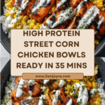 High Protein Street Corn Chicken Bowls combine juicy grilled chicken with smoky fire-roasted corn and a creamy, tangy sauce over fluffy white rice. This vibrant, satisfying dish is perfect for busy weeknights when you want bold flavors without fuss.