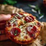 Store leftover pizza bagels in an airtight container in the refrigerator for 3–4 days. Reheat in a 350°F (175°C) oven for 5–8 minutes to restore crispness; avoid the microwave to prevent sogginess. You can freeze baked pizza bagels after cooling—they keep well for up to 2 months. Reheat from frozen at 375°F (190°C) for 15–20 minutes until heated through and crispy.