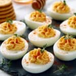 Keywords: deviled eggs, hot honey, appetizer, snack, eggs, spicy, sweet, mayonnaise, smoked paprika