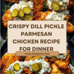 Keywords: dill pickle chicken, parmesan chicken, crispy chicken cutlets, baked chicken, pickle juice marinade, family dinner recipe