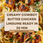 This Irresistibly Easy Cowboy Butter Chicken Linguine is a deliciously creamy and flavorful American dinner recipe that comes together in just 30 minutes. Featuring tender boneless chicken breasts cooked in a rich cowboy butter sauce with garlic, lemon, and parmesan, tossed with linguine pasta, this dish is perfect for busy weeknights and family meals.