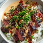 PrintKorean BBQ Steak Rice Bowls with Spicy Cream Sauce Recipe