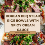 Keywords: Korean BBQ, steak rice bowls, spicy cream sauce, Korean cuisine, rice bowl recipe, marinated steak, quick dinner, easy Korean recipe