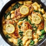 This Lemon Chicken Gnocchi recipe features tender chicken breasts seared to golden perfection, simmered with garlic and a creamy lemon-infused sauce, tossed with pillowy potato gnocchi and fresh baby spinach. A quick and delicious skillet meal that combines zesty brightness and comforting creaminess for a satisfying dinner.