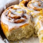- Cool and Ice Rolls: Let rolls cool for 10-20 minutes, then spoon icing over the top and garnish with fresh lemon zest.