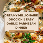 Keywords: creamy gnocchi, millionaire gnocchi, easy gnocchi dinner, skillet gnocchi, garlic parmesan gnocchi
