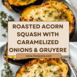 This Onion Gruyere Squash recipe combines the natural sweetness of roasted acorn squash with rich, caramelized onions and melted Gruyere cheese for a comforting and flavorful dish. Perfect as a side or a main for a cozy meal, the squash is roasted to tenderness, topped with savory onions infused with balsamic vinegar and thyme, then baked until bubbly and golden.